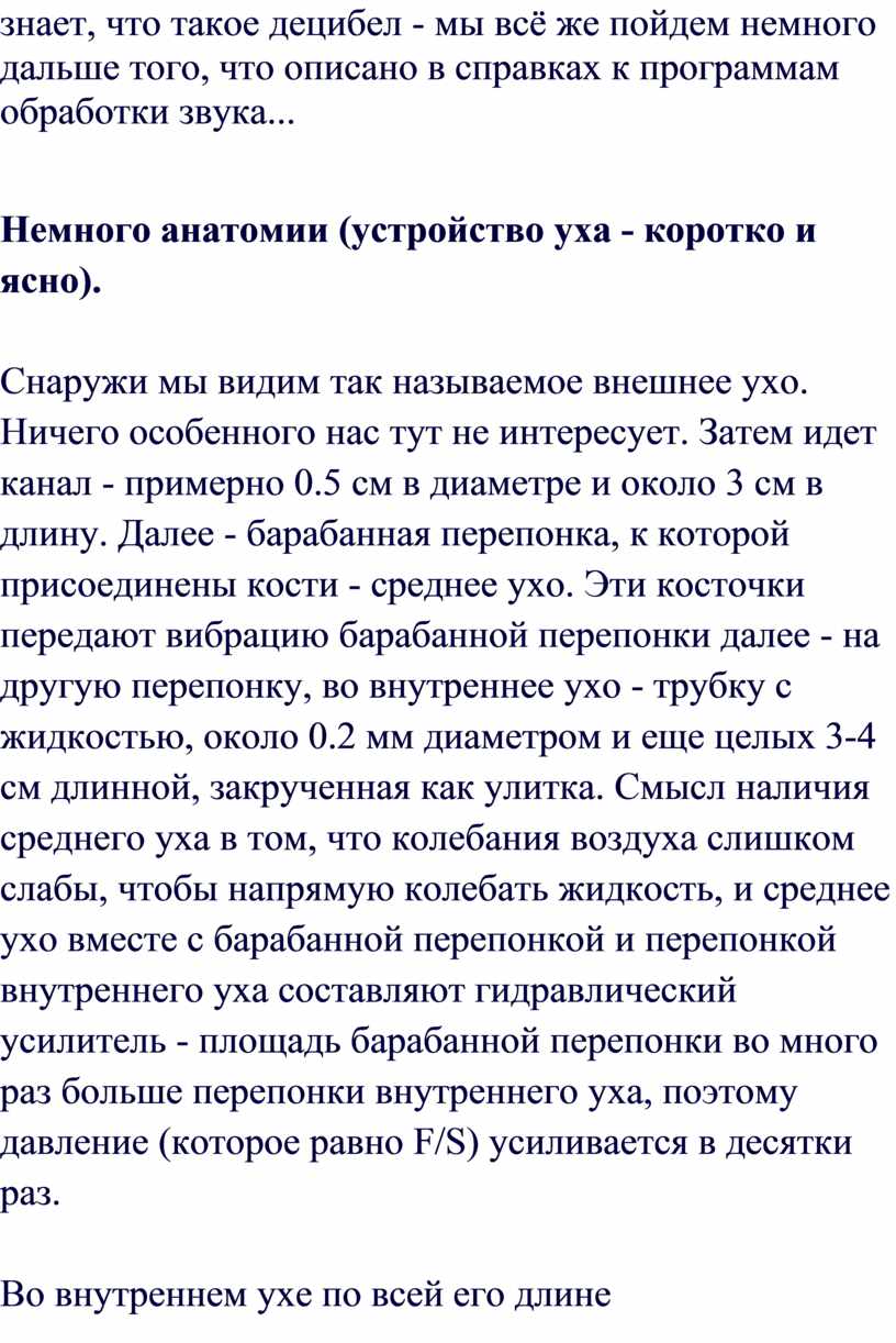 Да всего описать и нельзя - процесс звуковосприятия еще далеко не до конца изучен. Эти основы, однако, могут показаться интересными даже тем, кто знает, что такое децибел - мы всё же пойдем немного дальше того, что описано в справках к программам обработки звука...