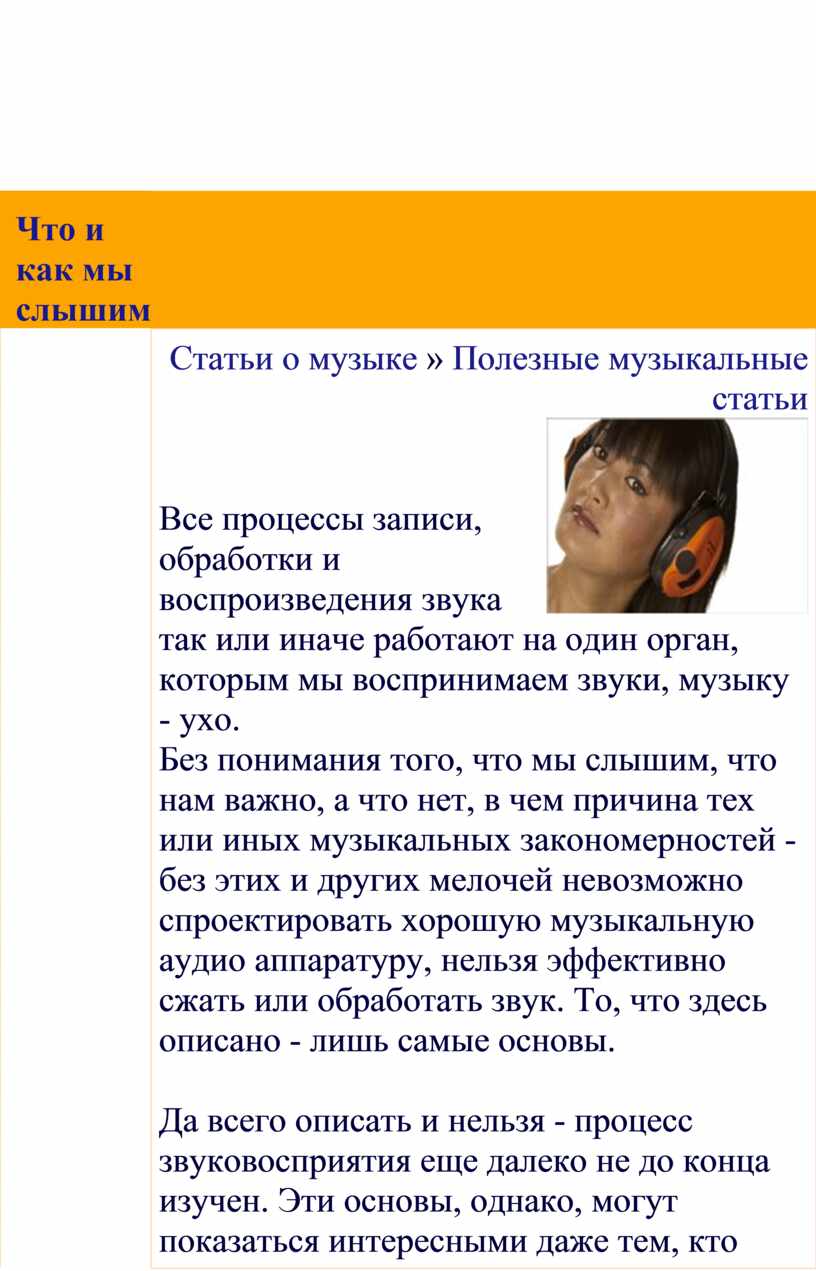 Что и как мы слышим (орган, которым мы воспринимаем звуки - ухо)