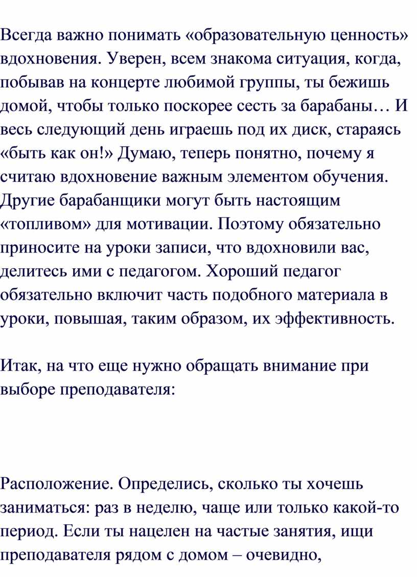 (даже к тем, которые не собираются стать профессиональными музыкантами)