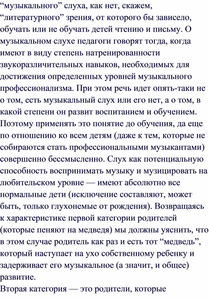 обучать детей чтению и письму. О музыкальном слухе педагоги говорят тогда,