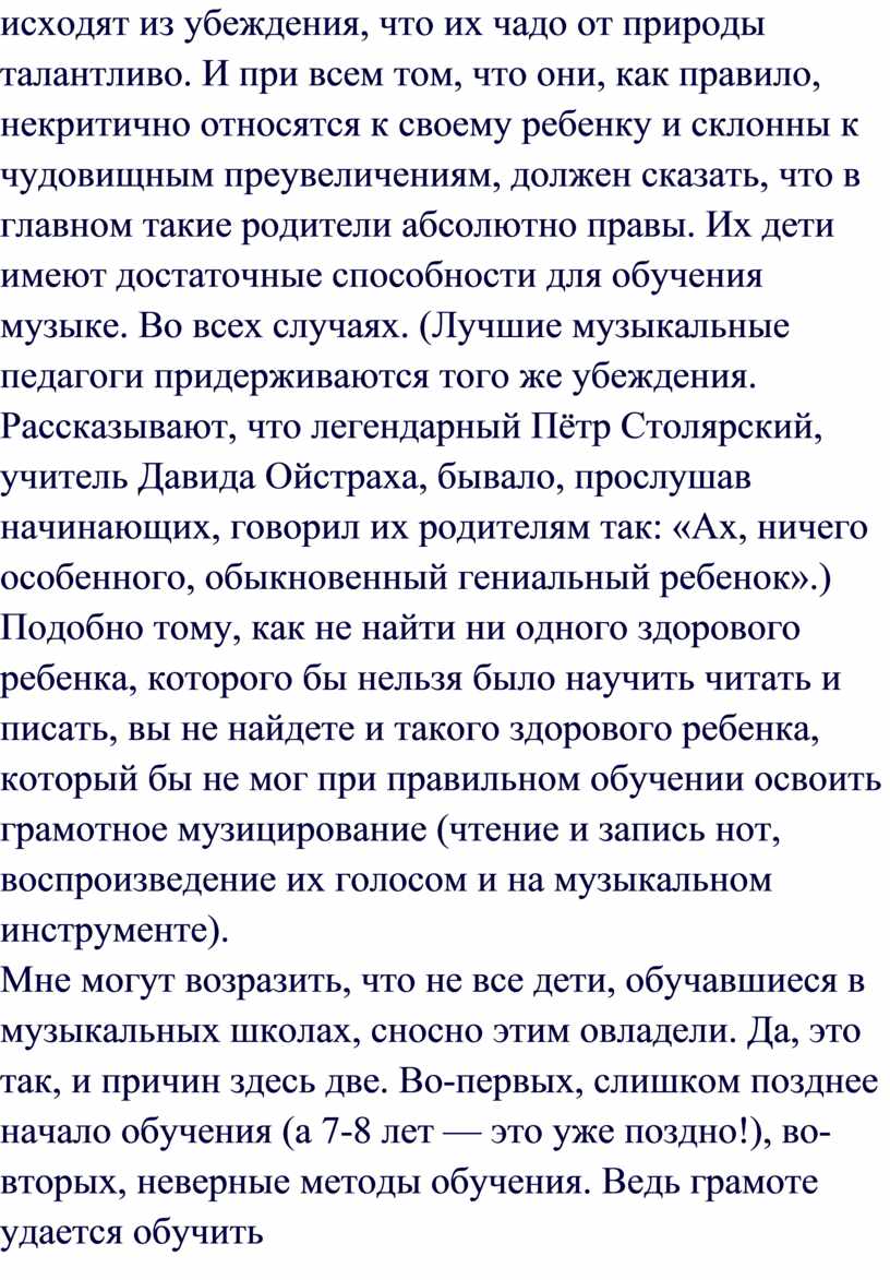 преждевременными выводами о силе таланта своих детей, а спокойно и взвешенно