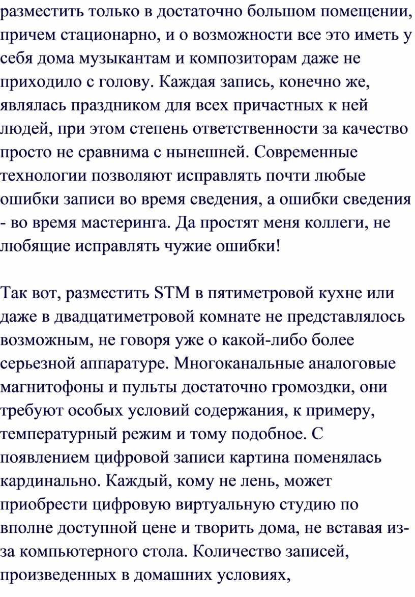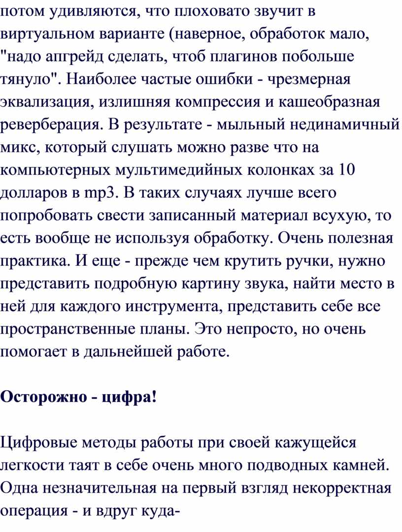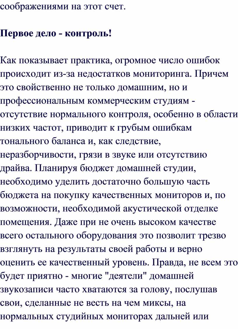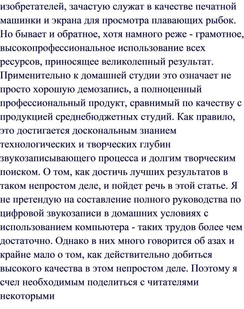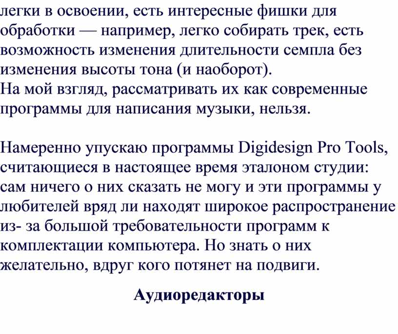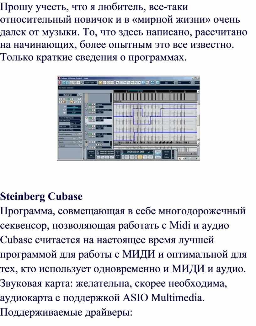 Намеренно упускаю программы Digidesign Pro Tools, считающиеся в настоящее время эталоном студии: сам ничего о них сказать не могу и эти программы у любителей вряд ли находят широкое распространение из- за большой требовательности программ к комплектации компьютера. Но знать о них желательно, вдруг кого потянет на подвиги.