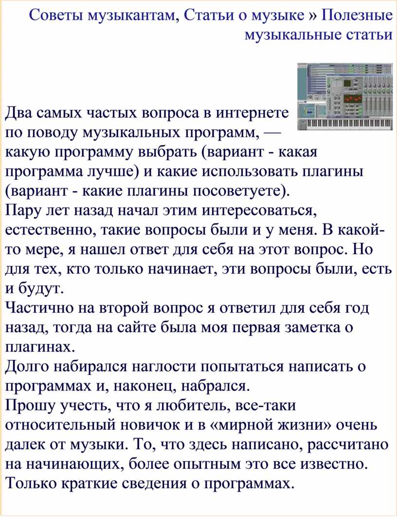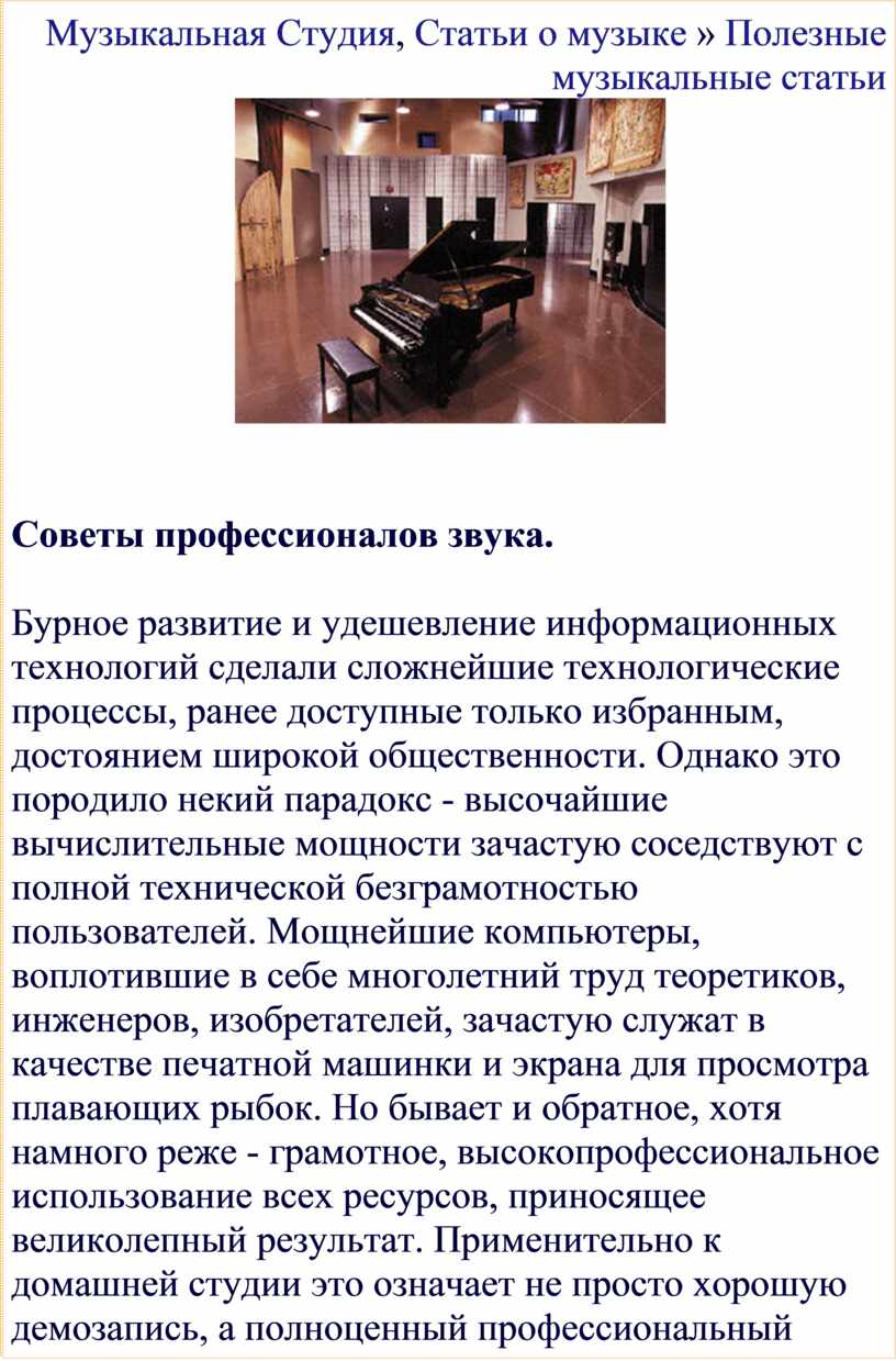 Советы музыкантамСтатьи о музыке » Полезные музыкальные статьи