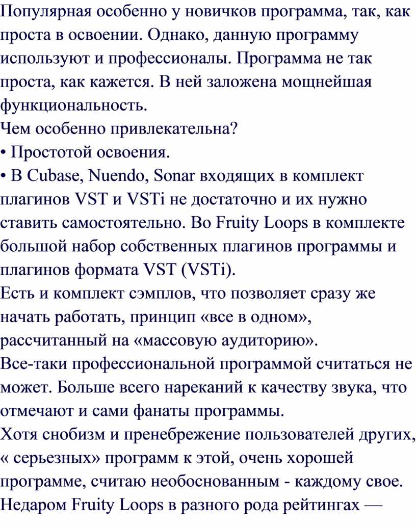 Хотя снобизм и пренебрежение пользователей других, « серьезных» программ к этой, очень хорошей программе, считаю необоснованным - каждому свое. Недаром Fruity Loops в разного рода рейтингах — скачивания, покупок, ниже 4 места не опускается.
