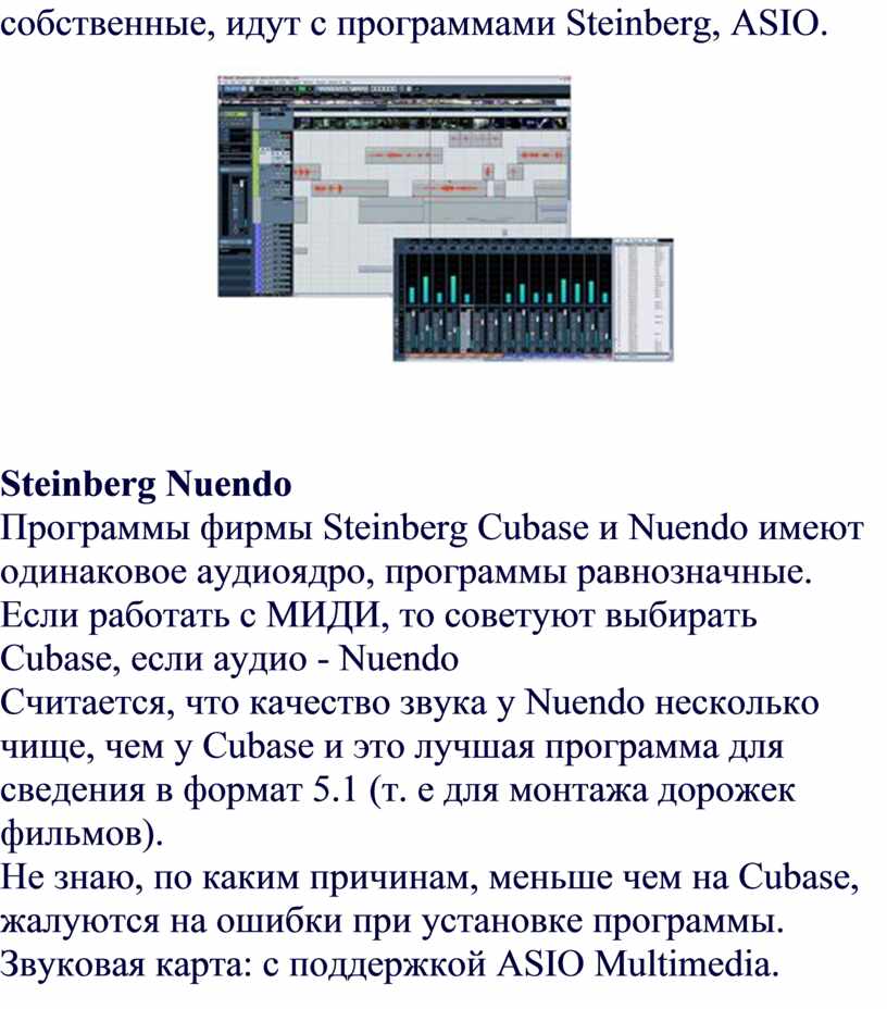 Программы фирмы Steinberg Cubase и Nuendo имеют одинаковое аудиоядро, программы равнозначные.