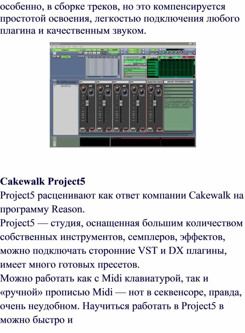 Project5 расценивают как ответ компании Cakewalk на программу Reason.