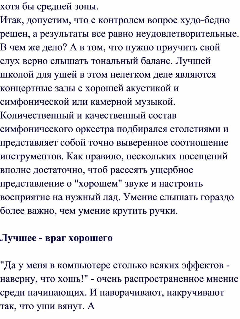 Прошу учесть, что я любитель, все-таки относительный новичок и в «мирной жизни» очень далек от музыки. То, что здесь написано, рассчитано на начинающих, более опытным это все известно.