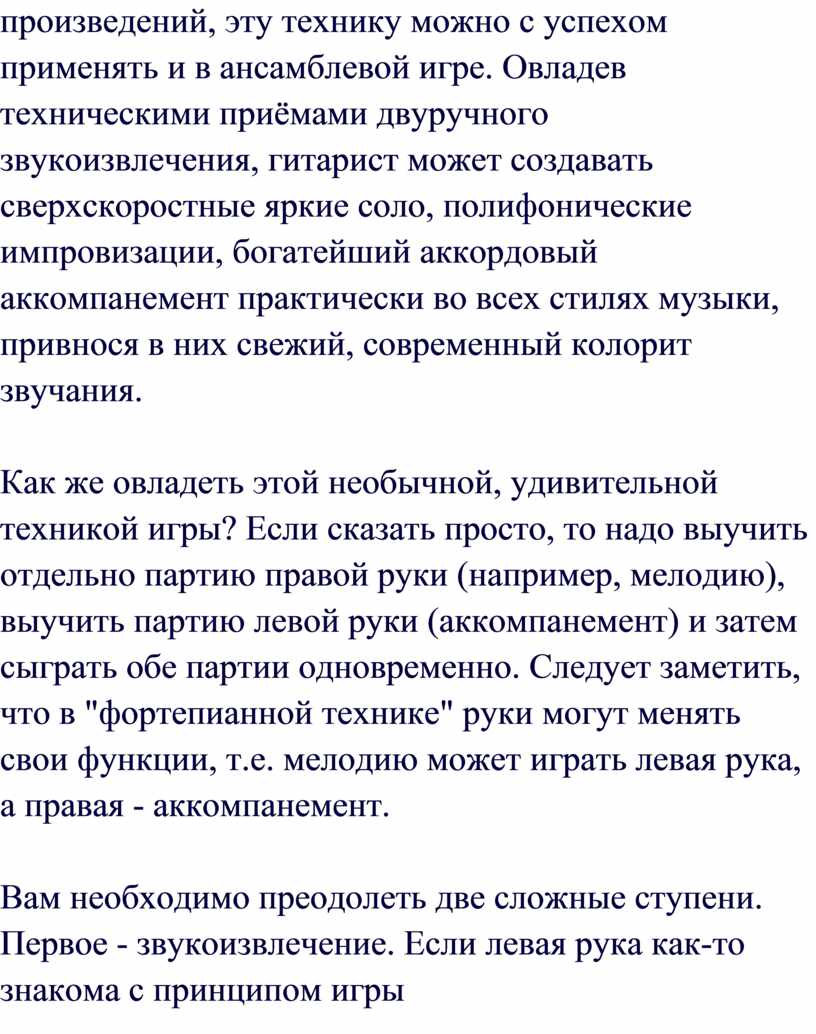 Очень важна в психологическом и профессиональном отношении игра но слуху. Она