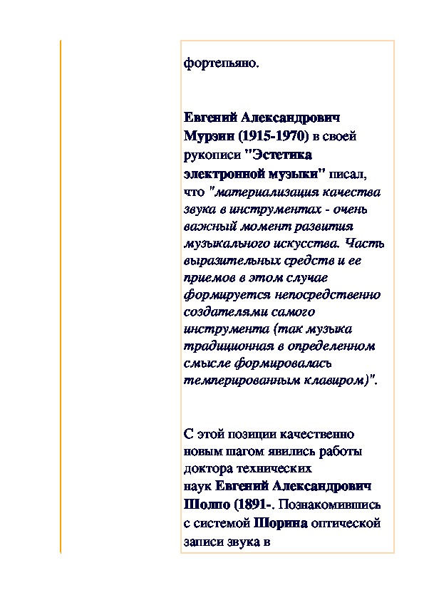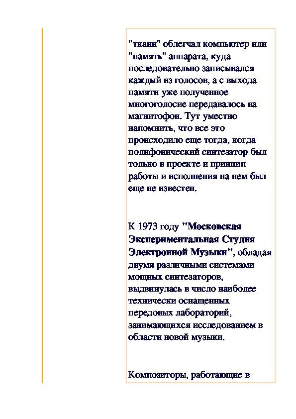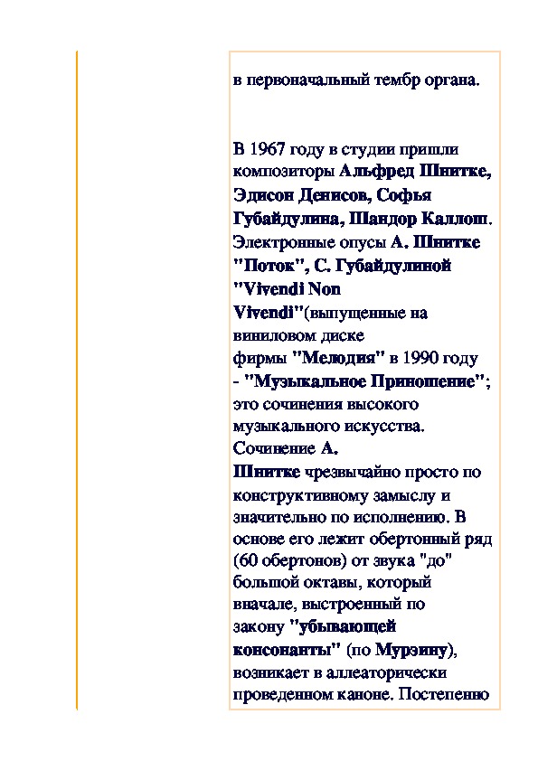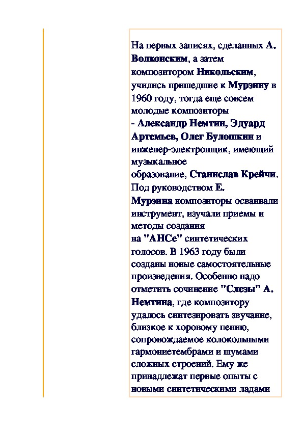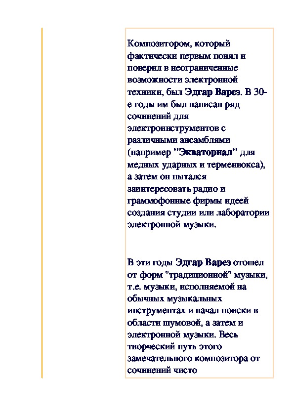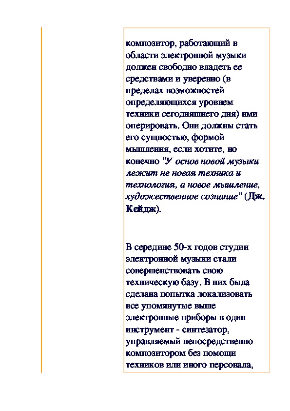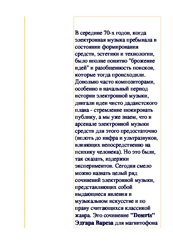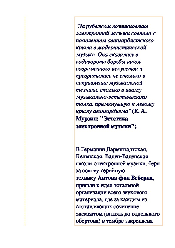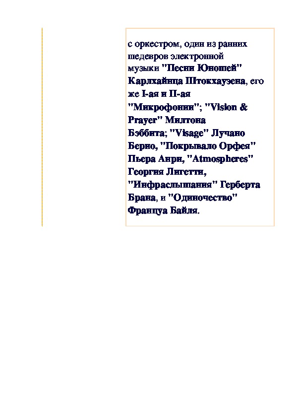 Позвольте предложить Вашему вниманию лекцию Эдуарда Николаевича Артемьева "Заметки об электронной музыке", посвящeнную интереснейшему пласту современного искусства - электронной и электроакустической музыке.Позвольте предложить Вашему вниманию лекцию Эдуарда Николаевича Артемьева "Заметки об электронной музыке", посвящeнную интереснейшему пласту современного искусства - электронной и электроакустической музыке.