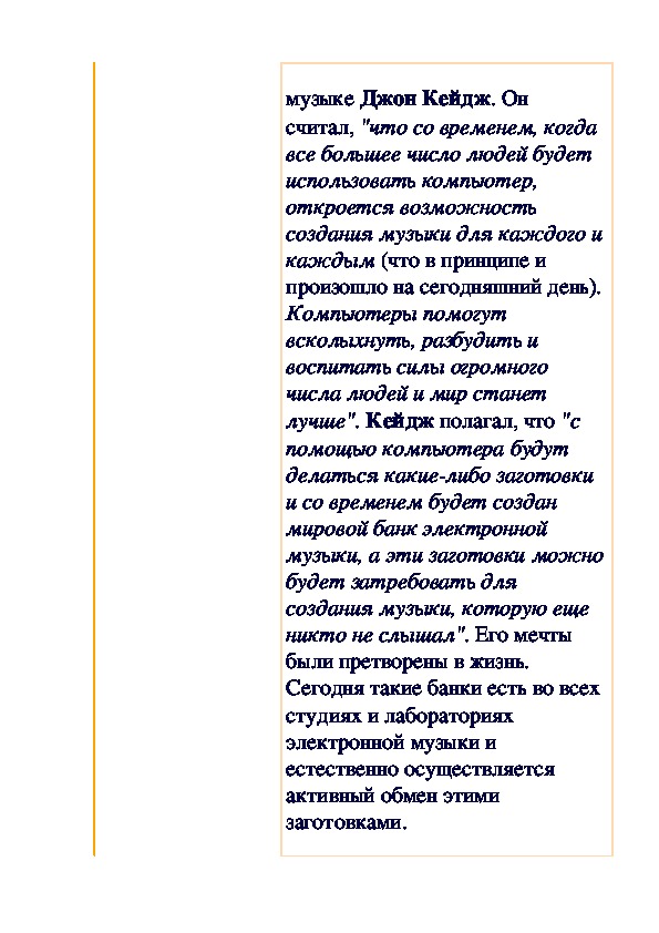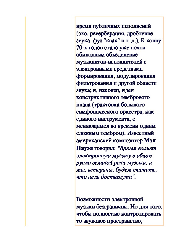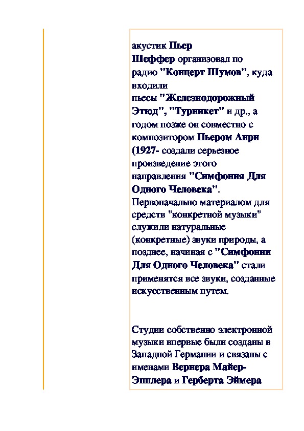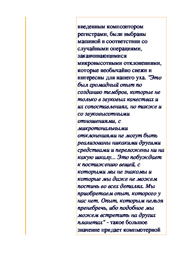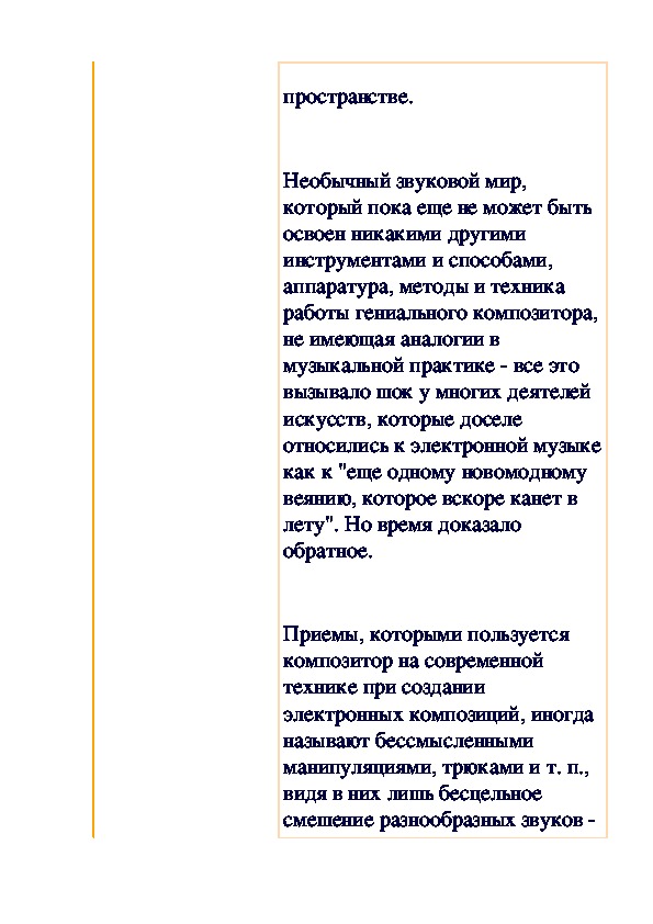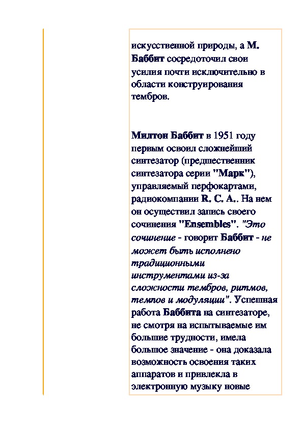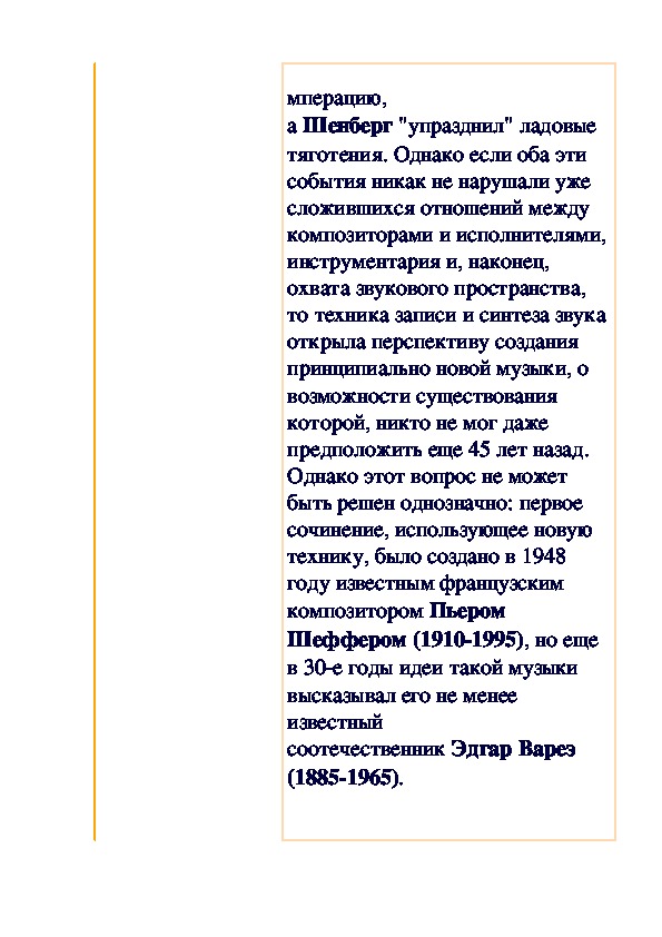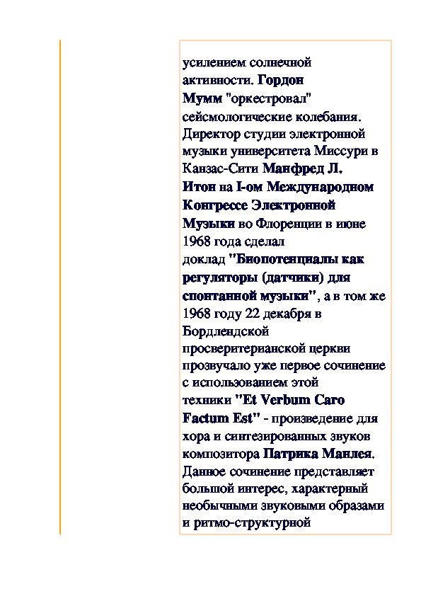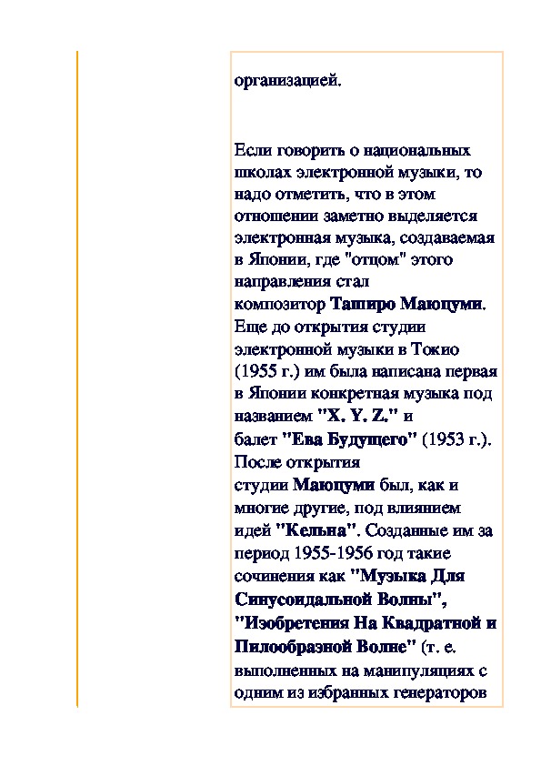 Позвольте предложить Вашему вниманию лекцию Эдуарда Николаевича Артемьева "Заметки об электронной музыке", посвящeнную интереснейшему пласту современного искусства - электронной и электроакустической музыке.Позвольте предложить Вашему вниманию лекцию Эдуарда Николаевича Артемьева "Заметки об электронной музыке", посвящeнную интереснейшему пласту современного искусства - электронной и электроакустической музыке.