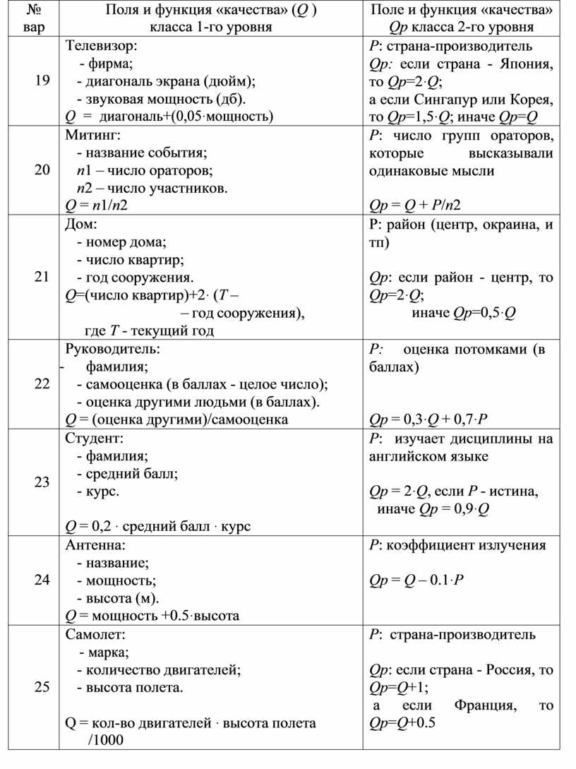 - функция, которая определяет «качество» объекта – Q по заданной фор- муле (табл11. 7, столб 2);
