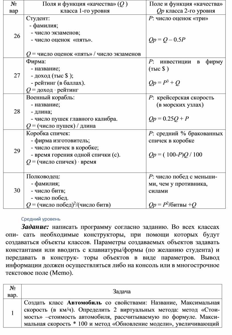 Задание: написать программу согласно заданию. Во всех классах опи- сать необходимые конструкторы, при помощи которых будут создаваться объекты классов. Параметры создаваемых объектов задавать константами или вводить с клавиатуры/формы (по желанию студента) и передавать в конструк- торы объектов в виде параметров. Вывод информации должен осуществляться либо на консоль или в многострочное текстовое поле (Memo).