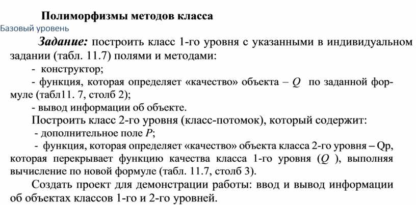 Задание: построить класс 1-го уровня с указанными в индивидуальном задании (табл. 11.7) полями и методами: