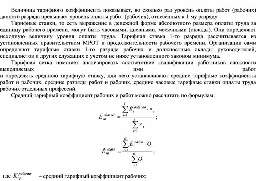 Средний тарифный коэффициент рабочих и работ можно рассчитать по формулам: