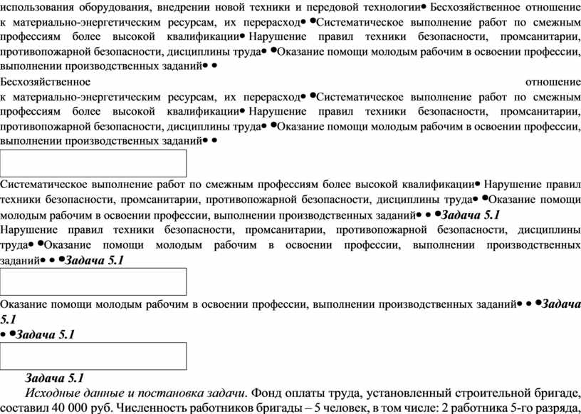 Невыполнение конкретных производственных заданий и распоряжений звеньевого, бригадира и мастера |