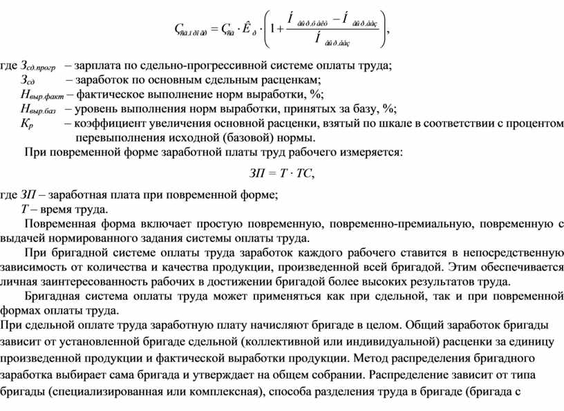 Сдельная форма включает следующие системы: прямая сдельная, сдельно-премиальная, косвенная сдельная, сдельно-прогрессивная / регрессивная, аккордная.