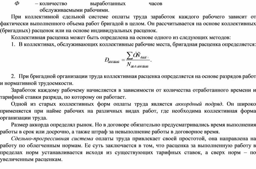 Одной из старых коллективных форм оплаты труда является аккордный подряд. Он широко применяется при найме рабочих на различных видах работ, где необходима коллективная форма организации труда.