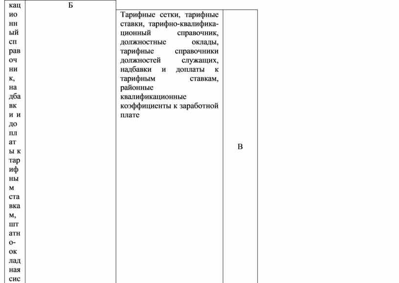 Тарифные сетки, тарифные ставки, тарифно-квалификационный справочник, надбавки и доплаты к тарифным ставкам, штатно-окладная система |