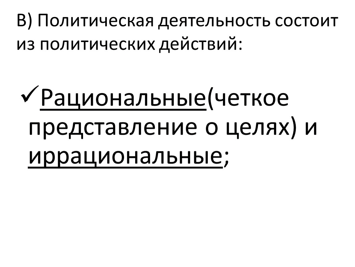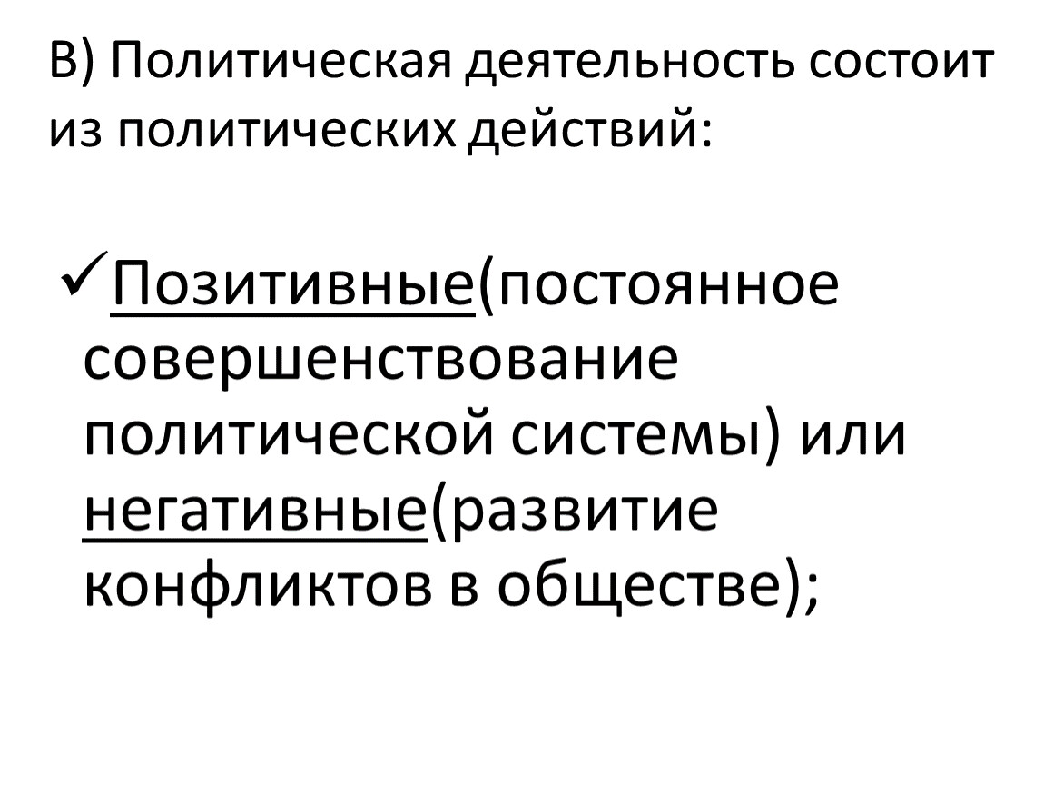 В) Политическая деятельность состоит из политических действий: