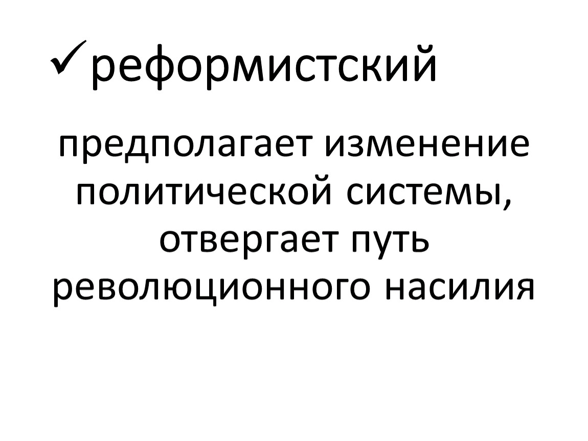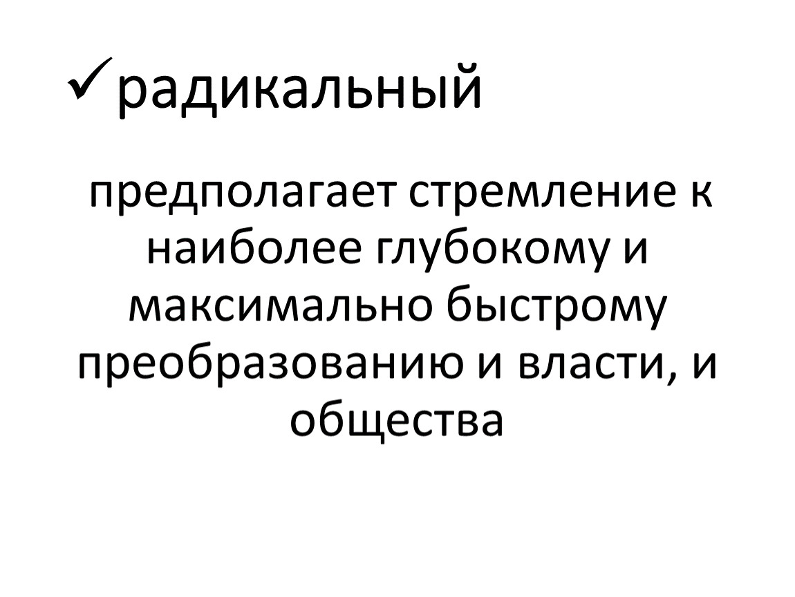 предполагает стремление к наиболее глубокому и максимально быстрому преобразованию и власти, и общества