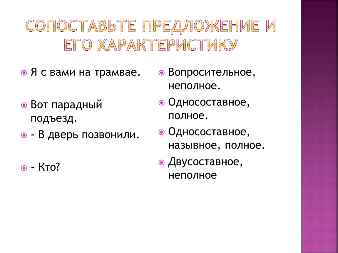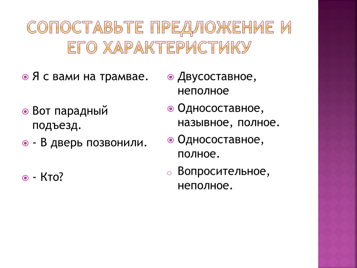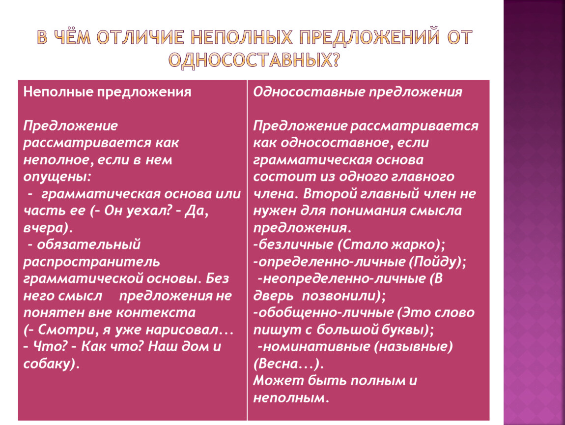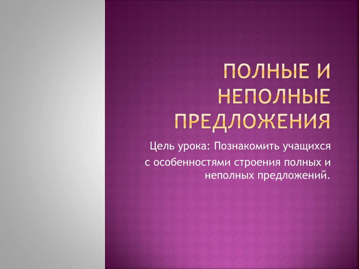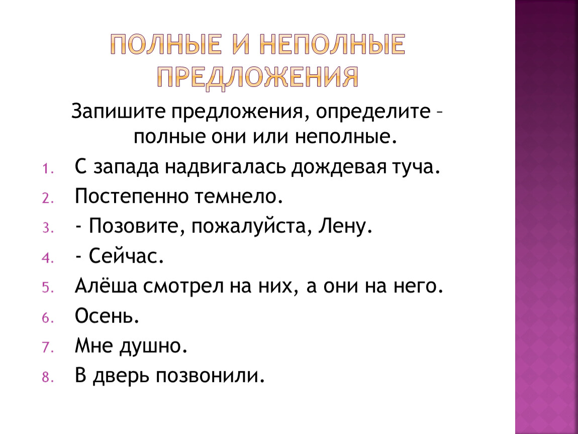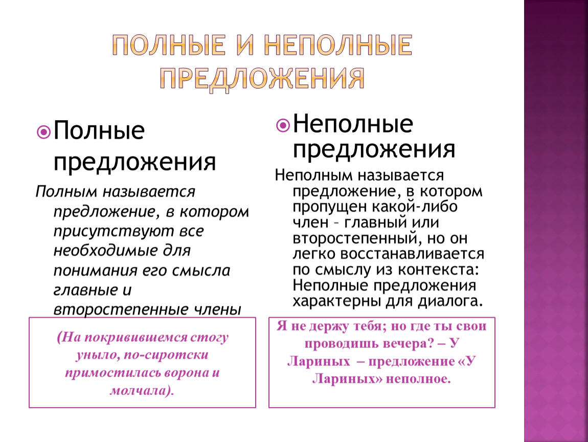 Полным называется предложение, в котором присутствуют все необходимые для понимания его смысла главные и второстепенные члены