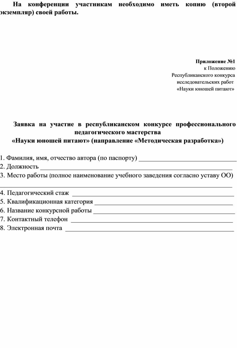 Заявка на участие в республиканском конкурсе профессионального педагогического мастерства