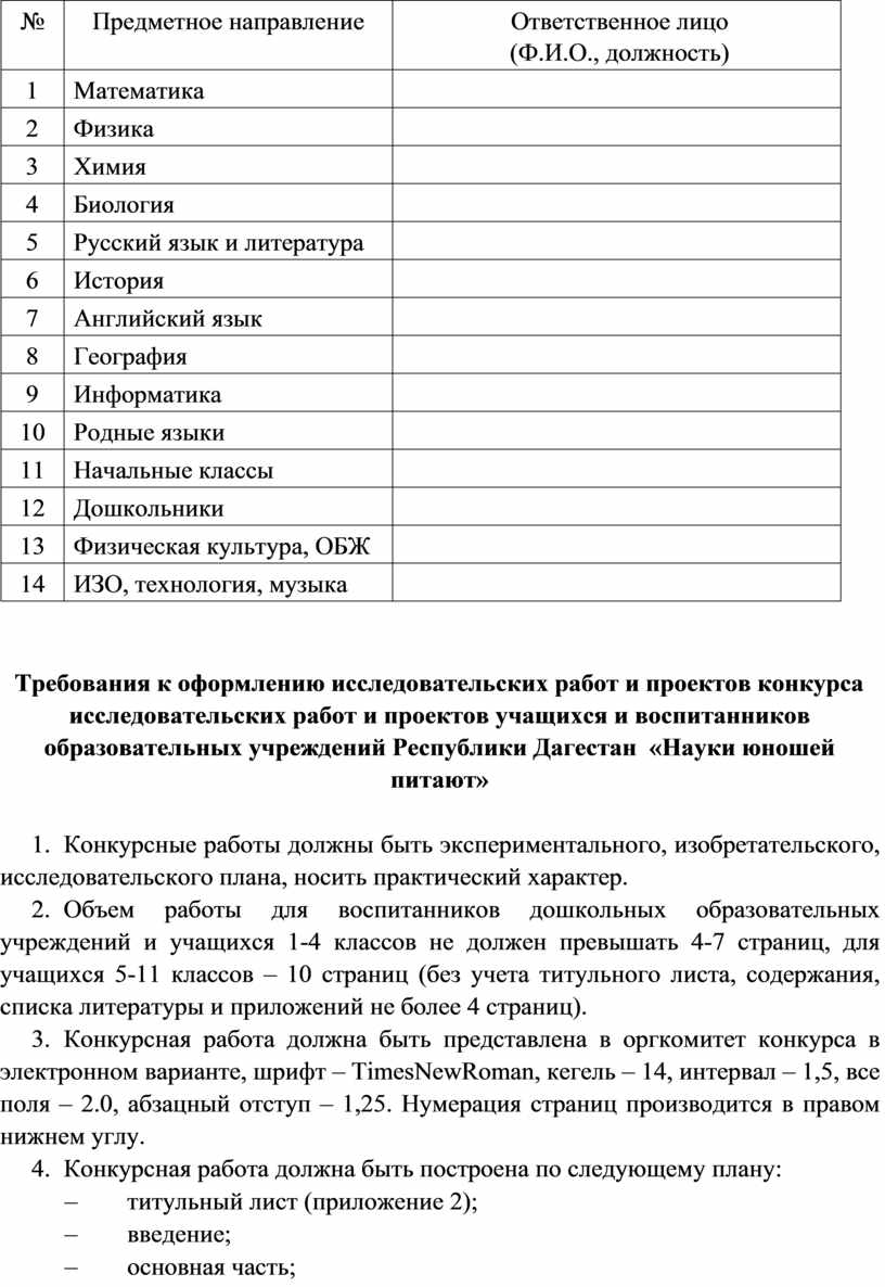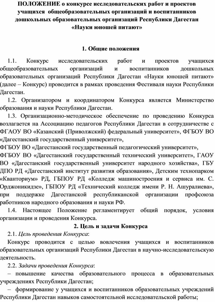 ПОЛОЖЕНИЕ о конкурсе исследовательских работ и проектов учащихся общеобразовательных организаций и воспитанников дошкольных образовательных организаций Республики Дагестан «Науки юношей питают»