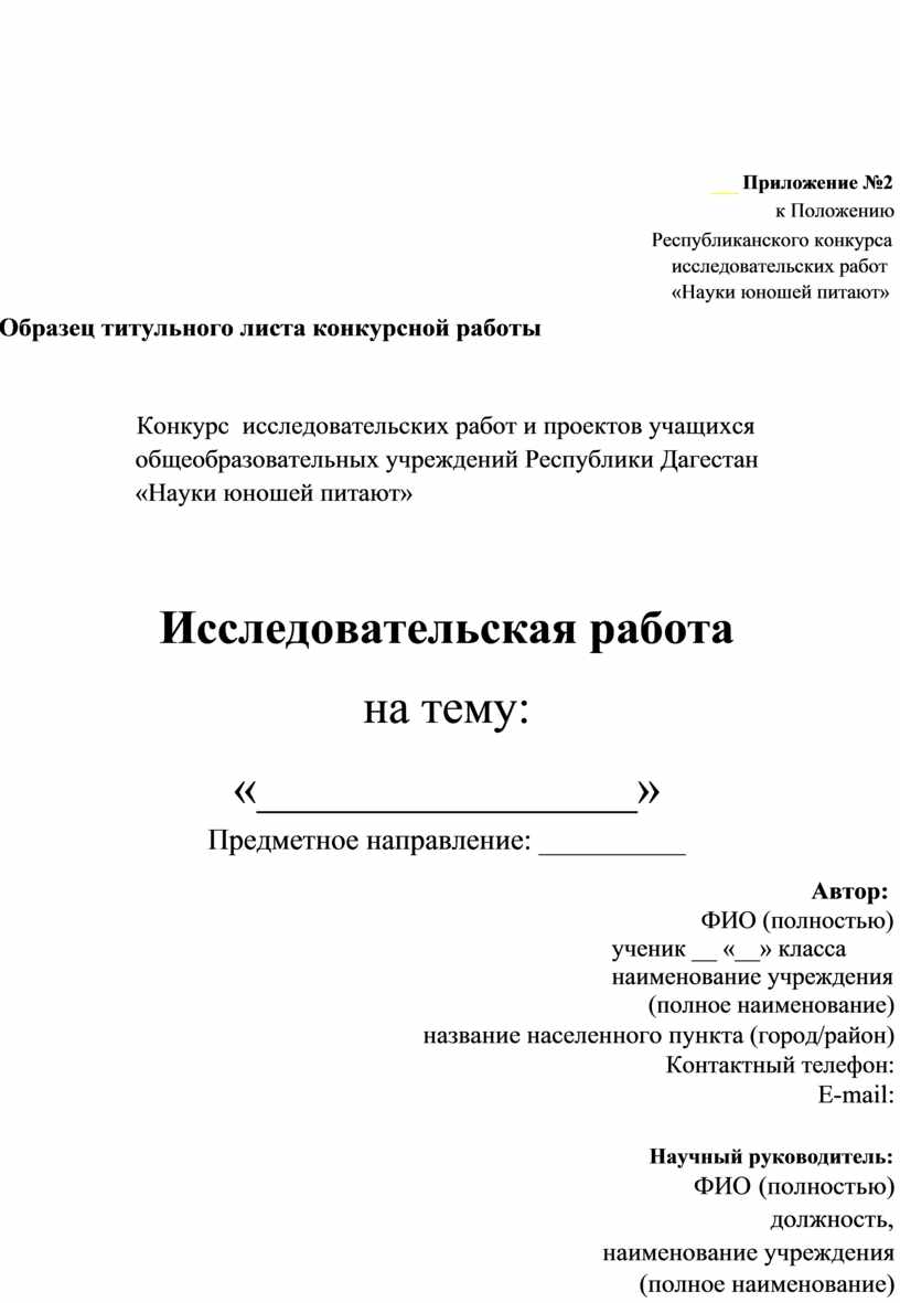 Образец титульного листа конкурсной работы