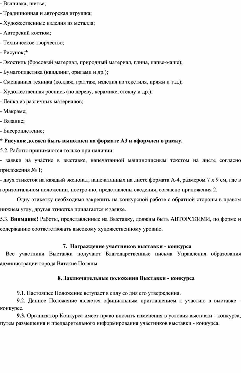 9.2. Данное Положение является официальным приглашением к участию в выставке - конкурсе.