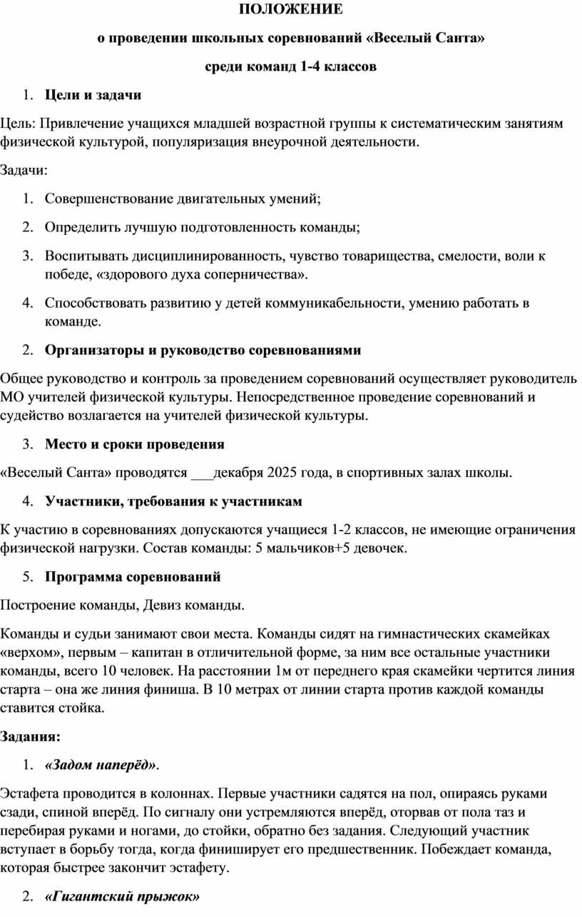 о проведении школьных соревнований «Веселый Санта»