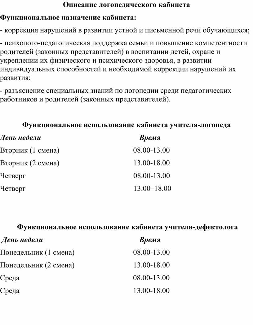 Положение о кабинете учителя – логопеда, учителя – дефектолога