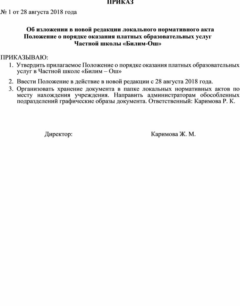 1. Утвердить прилагаемое Положение о порядке оказания платных образовательных услуг в Частной школе «Билим – Ош»