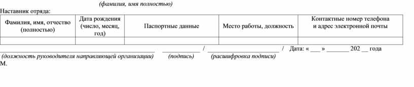 5.2 При подаче заявки Наставнику отряда необходимо: