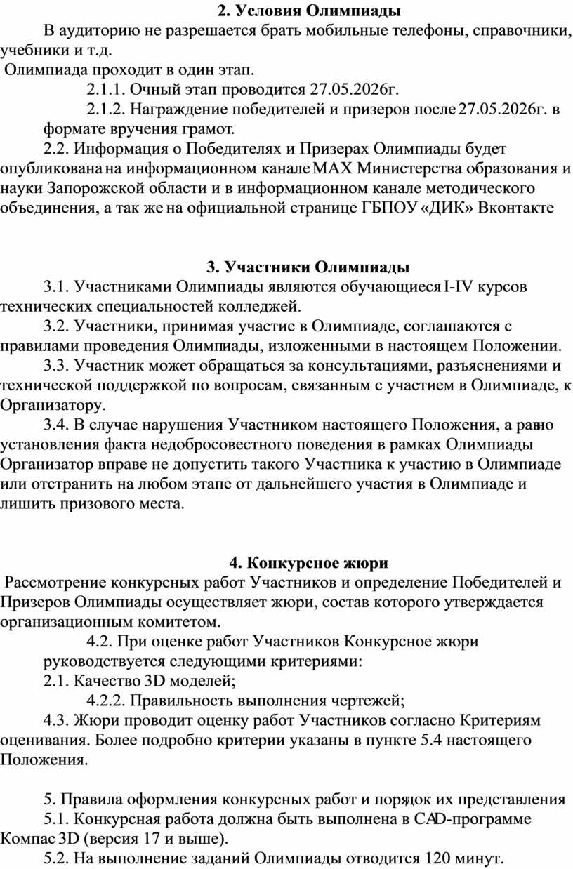 2.2. Информация о Победителях и Призерах Олимпиады будет опубликована на информационном канале MAX Министерства образования и науки Запорожской области и в информационном канале методического объединения, а так же на официальной странице ГБПОУ «ДИК» Вконтакте https://vk.ru/club220002647 после 27.05.2026г.