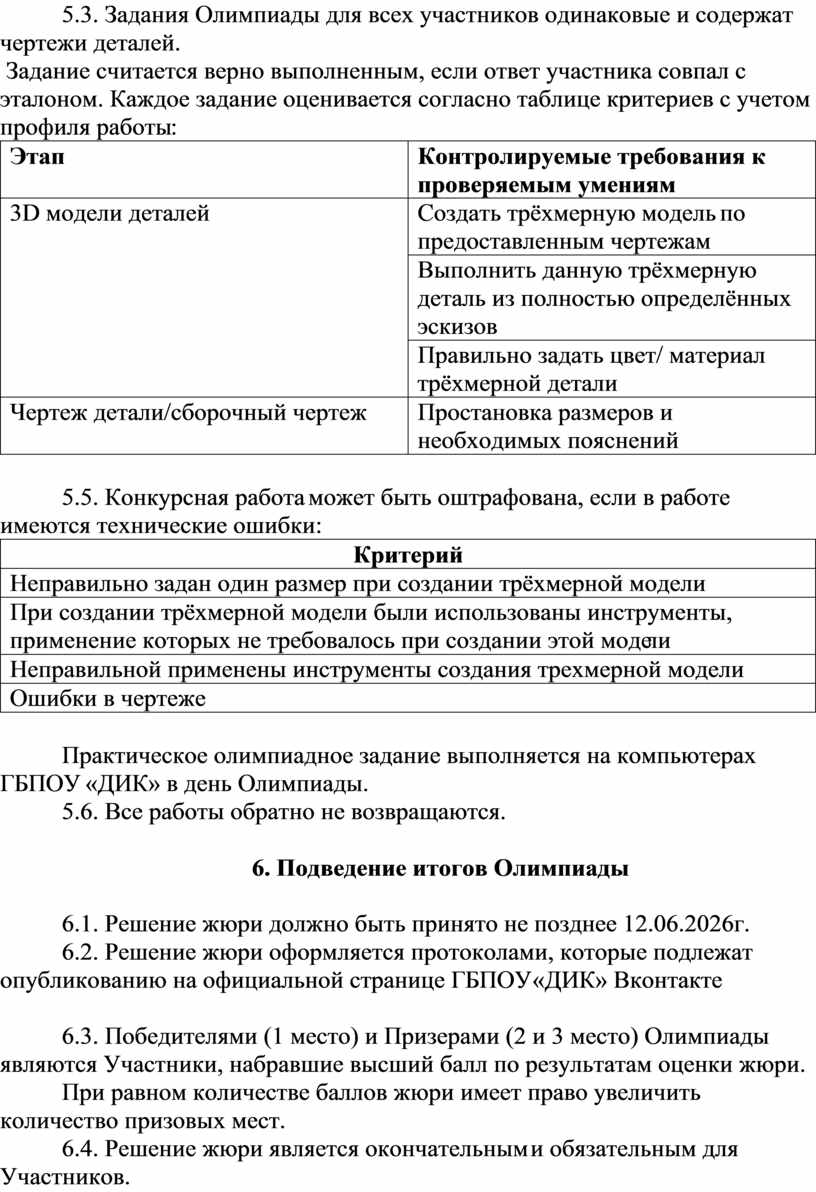 6.2. Решение жюри оформляется протоколами, которые подлежат опубликованию на официальной странице ГБПОУ «ДИК» Вконтакте https://vk.ru/club220002647.