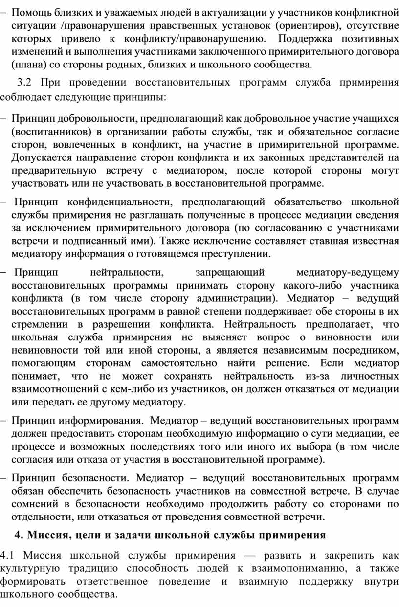 3.2 При проведении восстановительных программ служба примирения соблюдает следующие принципы: