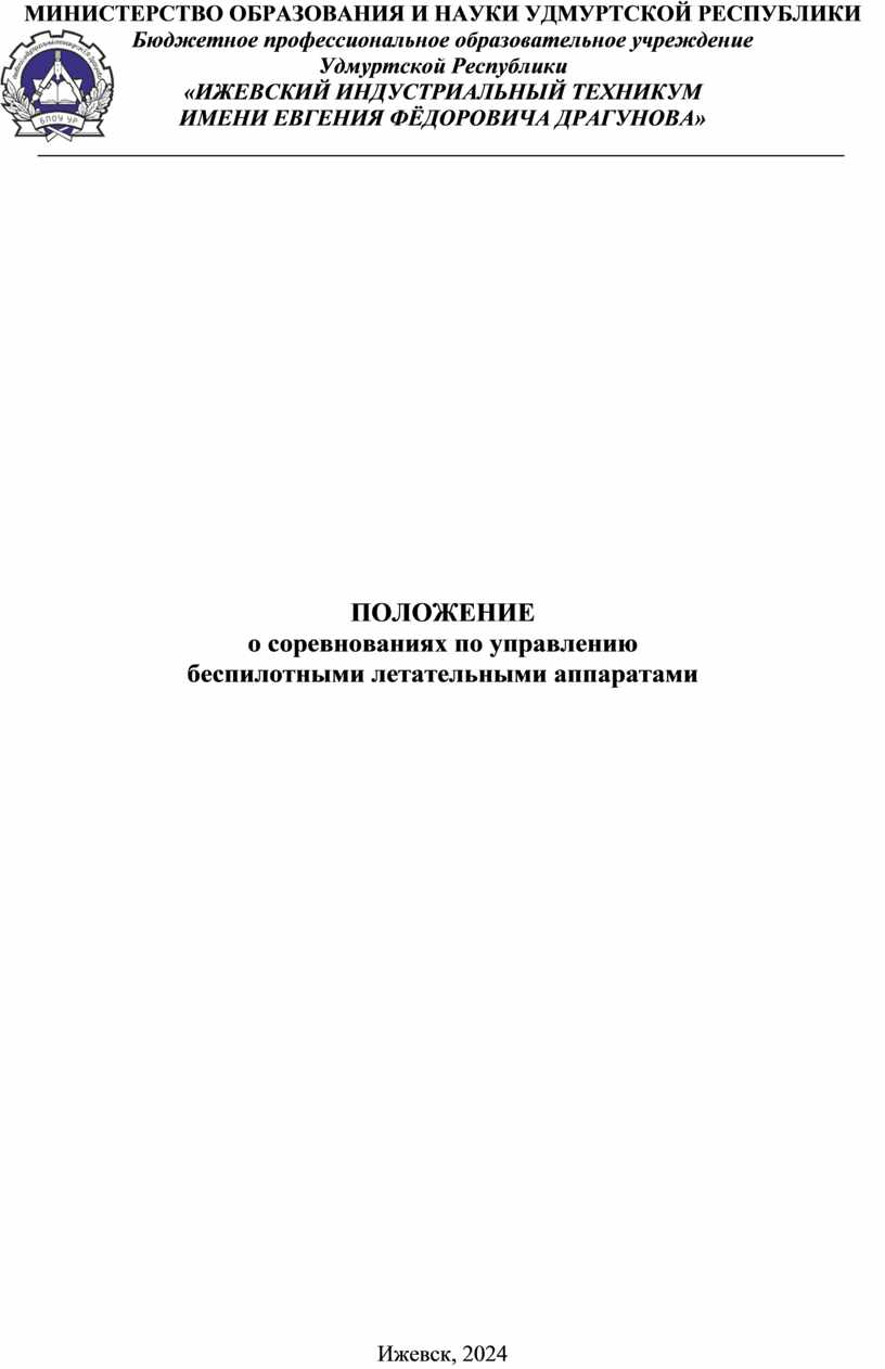 3. Соревнования организуются на базе бюджетного профессионального образовательного учреждения Удмуртской Республики «Ижевский индустриальный техникум имени Евгения Фёдоровича Драгунова» (далее - техникум) 08 октября 2024г.