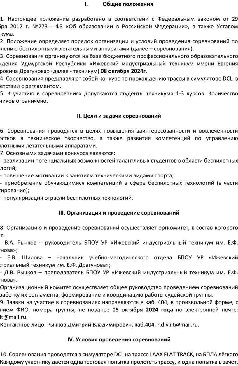 2. Положение определяет порядок организации и условий проведения соревнований по управлению беспилотными летательными аппаратами (далее – соревнования).