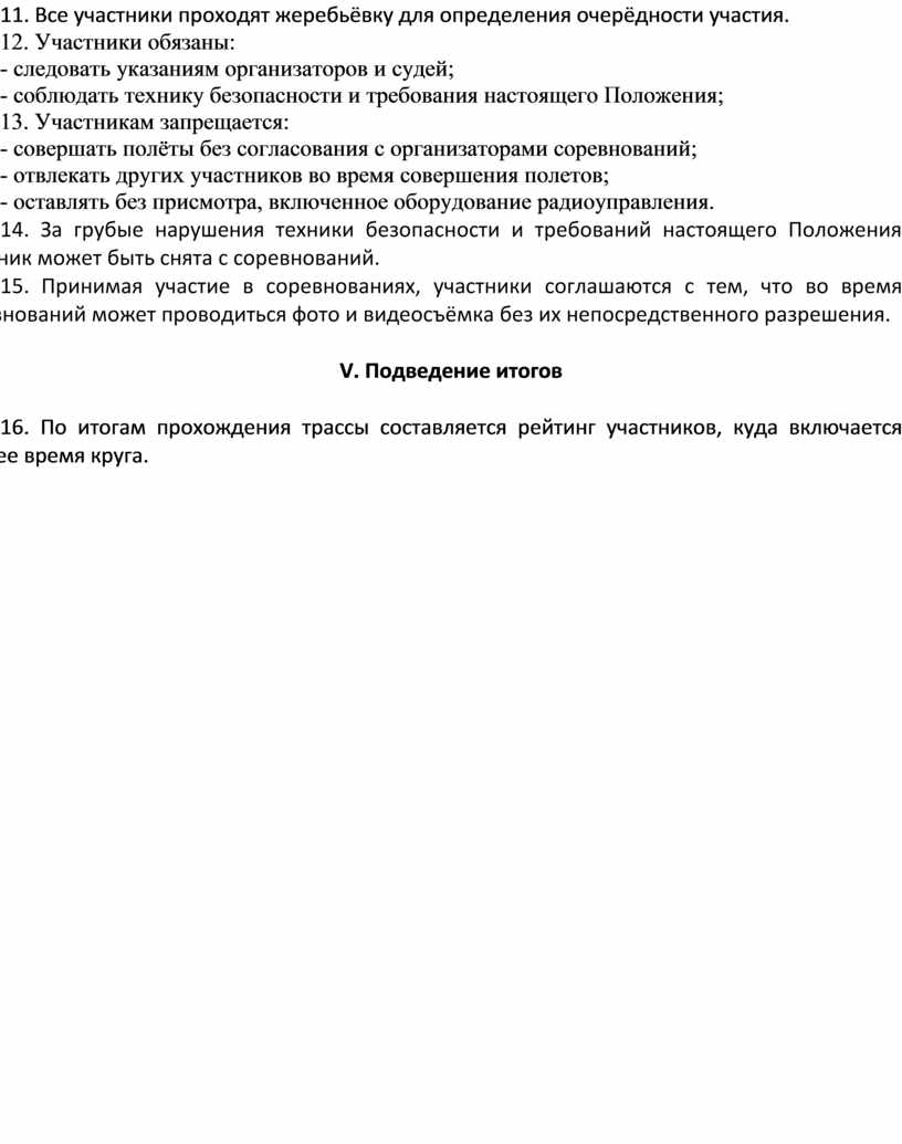 15. Принимая участие в соревнованиях, участники соглашаются с тем, что во время соревнований может проводиться фото и видеосъёмка без их непосредственного разрешения.