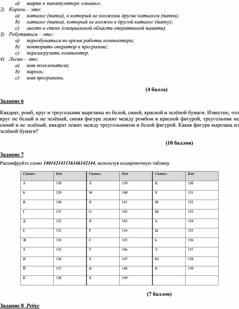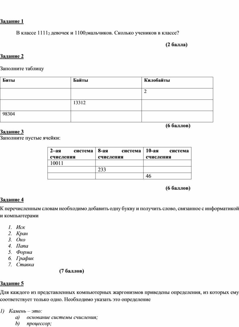 5.1. Олимпиада по информатике включает выполнение теоретических и практических конкурсных заданий.
