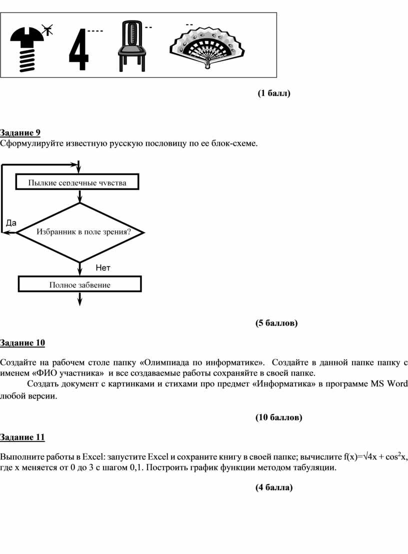 Создайте на рабочем столе папку «Олимпиада по информатике». Создайте в данной папке папку с именем «ФИО участника» и все создаваемые работы сохраняйте в своей папке.
