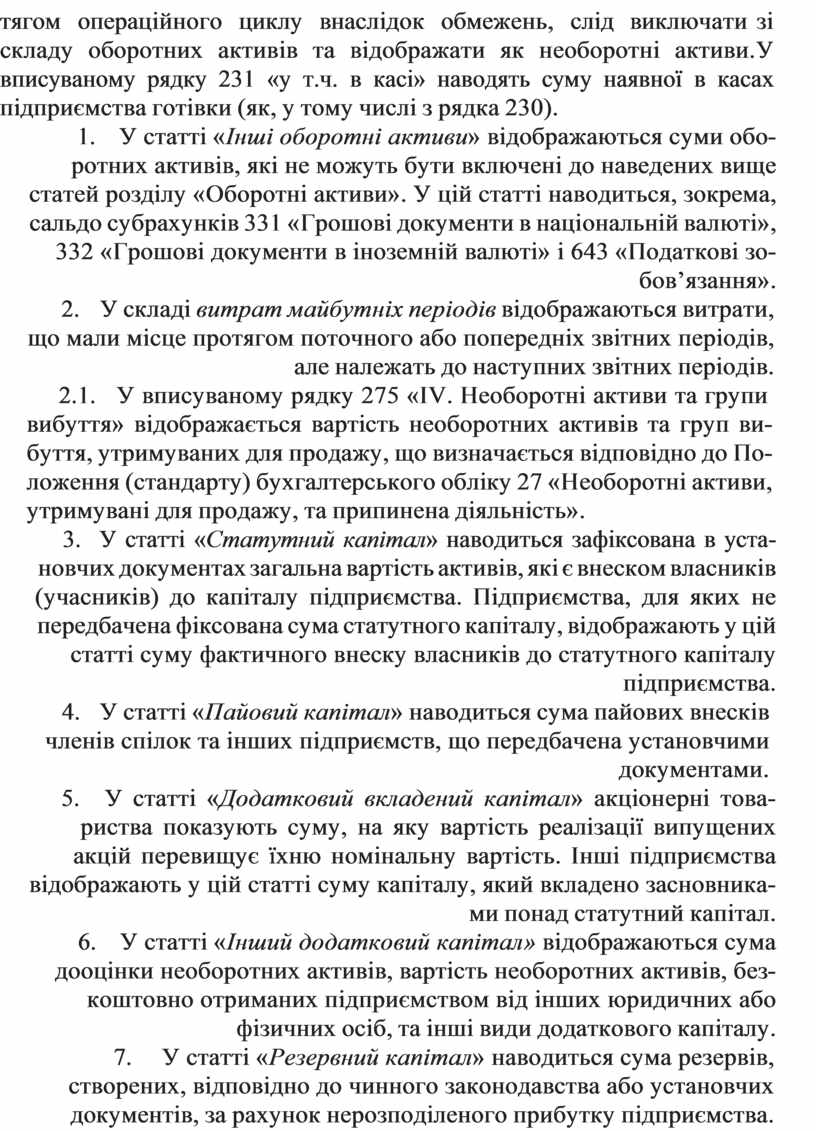тягом операційного циклу внаслідок обмежень, слід виключати зі складу оборотних активів та відображати як необоротні активи. У вписуваному рядку 231 «у т.ч. в касі» наводять суму наявної в касах підприємства готівки (як, у тому числі з рядка 230).