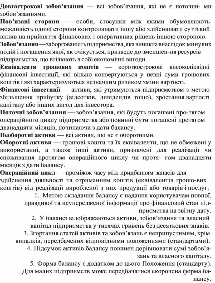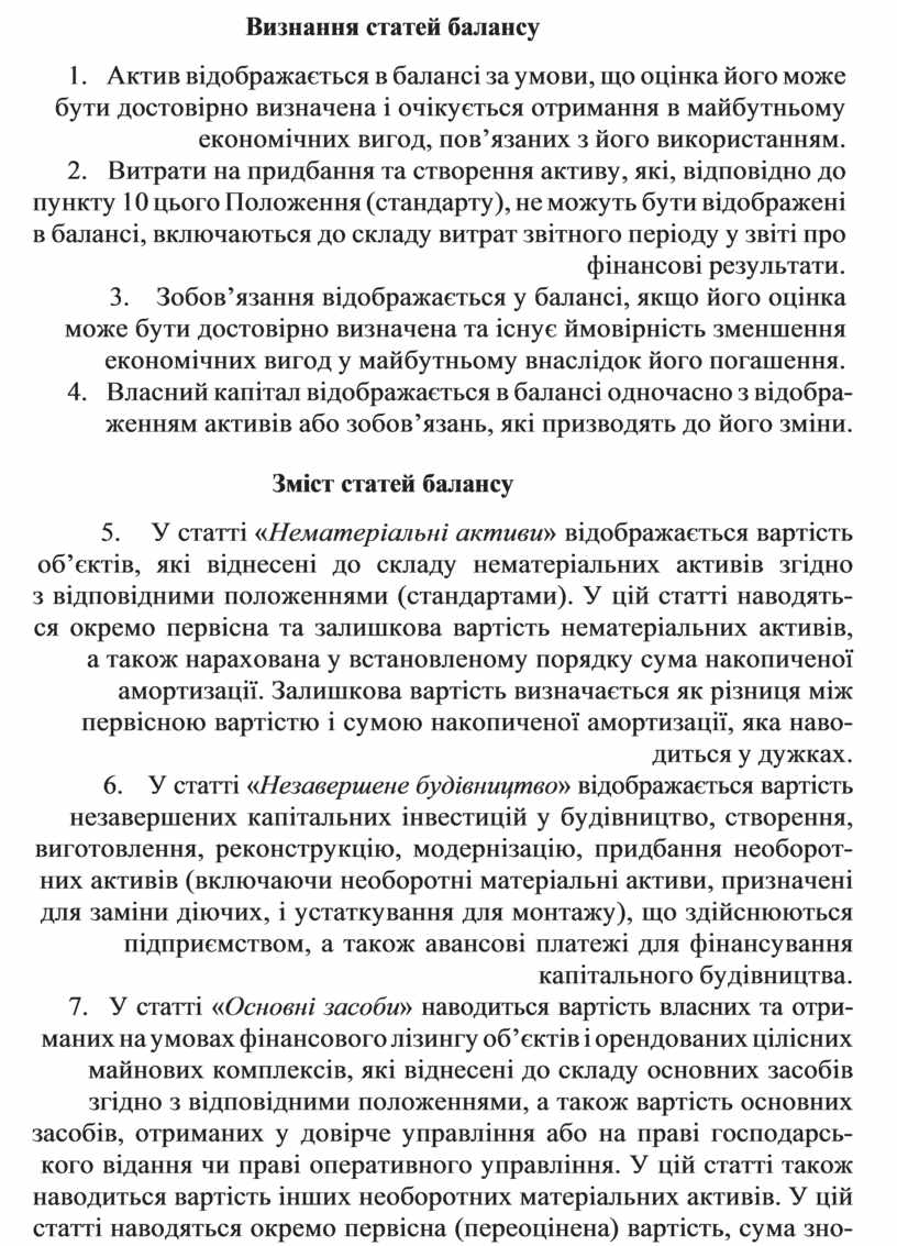 1. Цим Положенням (стандартом) визначаються зміст і форма балансу та загальні вимоги до розкриття його статей.