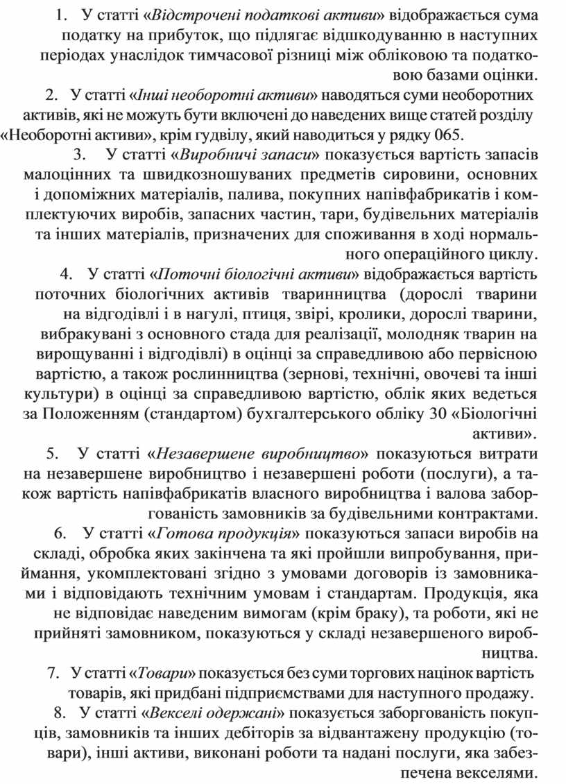 21. У статті «Виробничі запаси» показується вартість запасів малоцінних та швидкозношуваних предметів сировини, основних і допоміжних матеріалів, палива, покупних напівфабрикатів і ком- плектуючих виробів, запасних частин, тари, будівельних матеріалів та інших матеріалів, призначених для споживання в ході нормаль- ного операційного циклу.