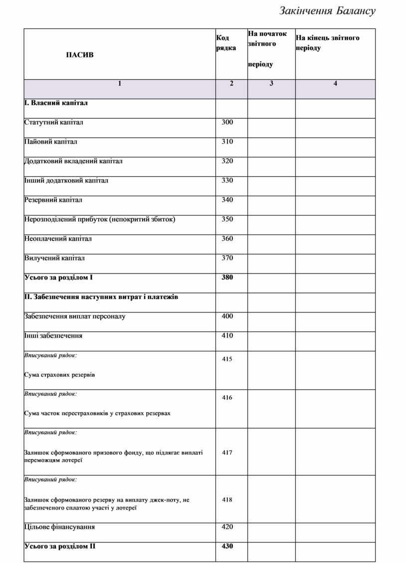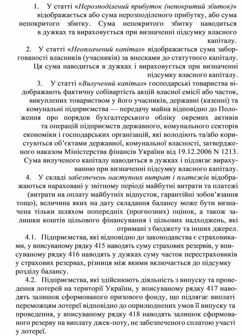 45.1. Підприємства, які відповідно до законодавства є страховика- ми, у вписуваному рядку 415 наводять суму страхових резервів, у впи- суваному рядку 416 наводять у дужках суму часток перестраховиків у страхових резервах, різниця між якими включається до підсумку розділу балансу.