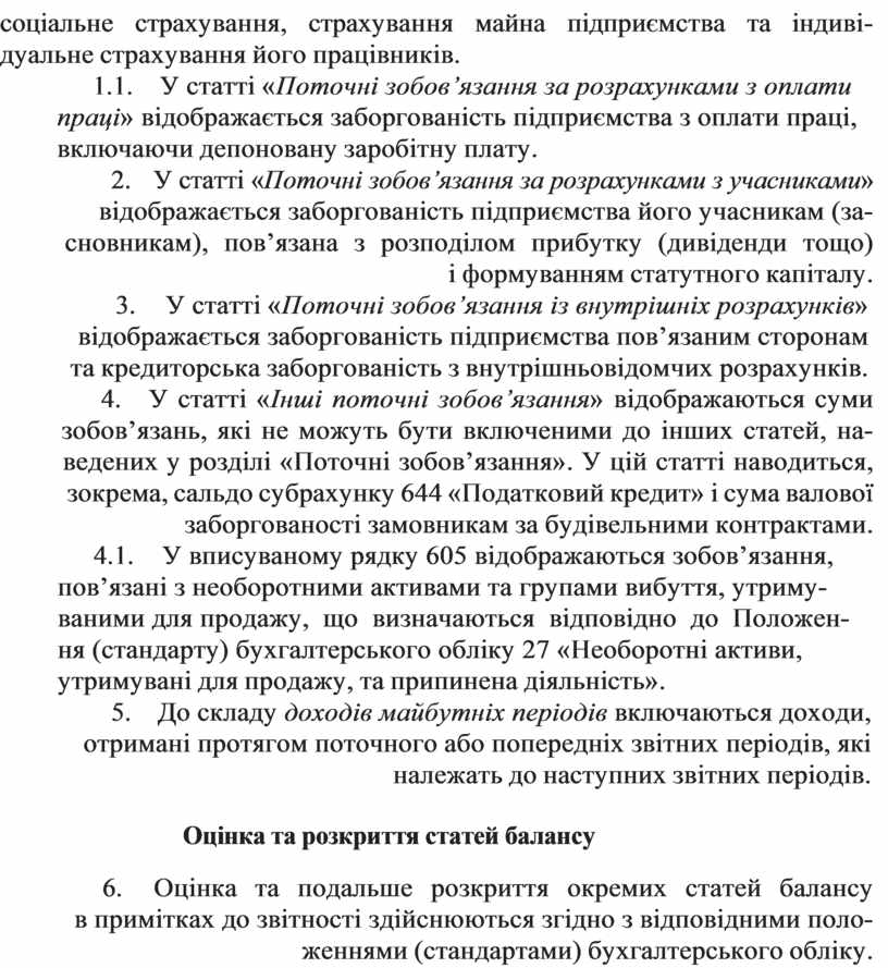 62. Оцінка та подальше розкриття окремих статей балансу в примітках до звітності здійснюються згідно з відповідними поло- женнями (стандартами) бухгалтерського обліку.