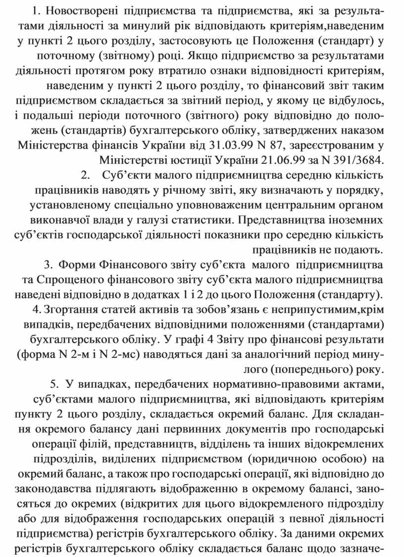 3. Новостворені підприємства та підприємства, які за результа- тами діяльності за минулий рік відповідають критеріям,наведеним у пункті 2 цього розділу, застосовують це Положення (стандарт) у поточному (звітному) році. Якщо підприємство за результатами діяльності протягом року втратило ознаки відповідності критеріям, наведеним у пункті 2 цього розділу, то фінансовий звіт таким підприємством складається за звітний період, у якому це відбулось, і подальші періоди поточного (звітного) року відповідно до поло- жень (стандартів) бухгалтерського обліку, затверджених наказом Міністерства фінансів України від 31.03.99 N 87, зареєстрованим у Міністерстві юстиції України 21.06.99 за N 391/3684.