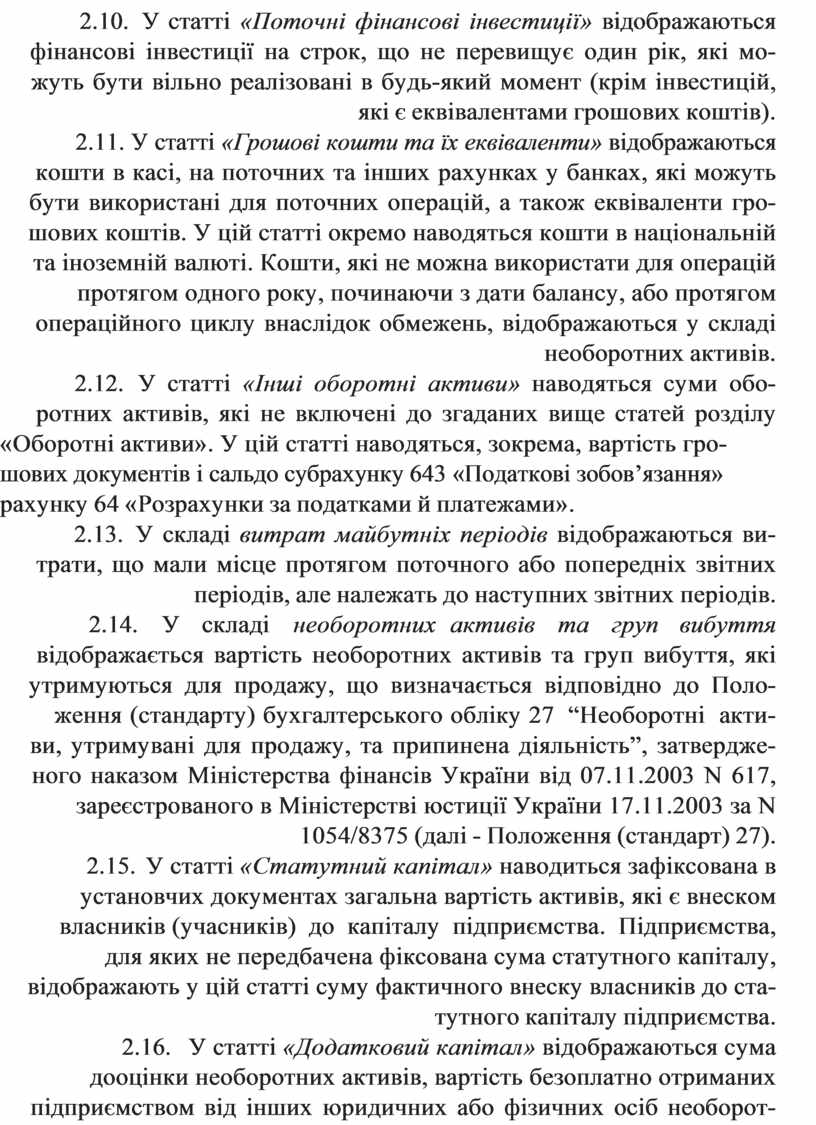 2.5. У статті «Інші необоротні активи» наводяться суми інших не- оборотних активів, які не можуть бути включені до згаданих вище статей розділу «Необоротні активи». При переході підприємств на застосування цього Положення (стандарту) до цієї статті на по- чаток звітного року також включаються дані, наведені у статті