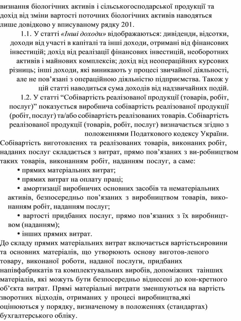 визнання біологічних активів і сільськогосподарської продукції та дохід від зміни вартості поточних біологічних активів наводяться лише довідково у вписуваному рядку 201.