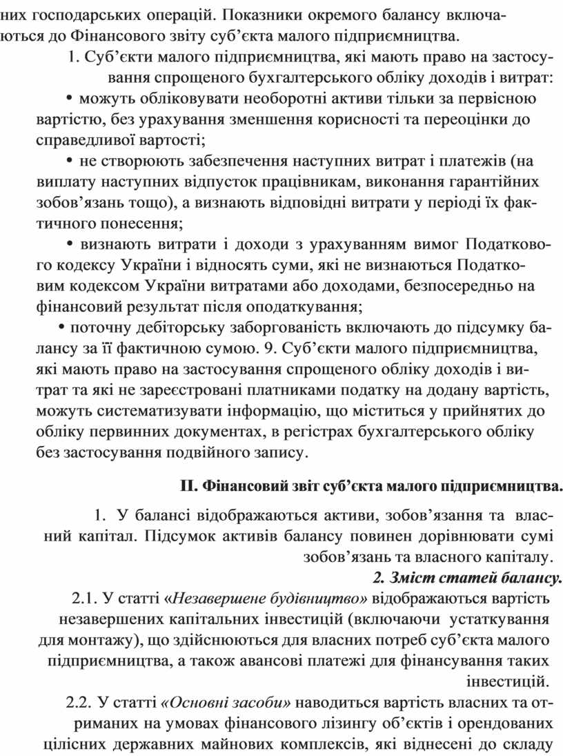 них господарських операцій. Показники окремого балансу включа- ються до Фінансового звіту суб’єкта малого підприємництва.
